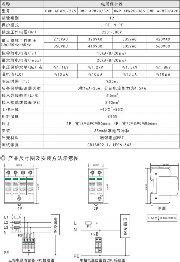 | 800121 | OMP-APM20/1+NPE | 單相220V用,1+1保護(hù)模式 | |